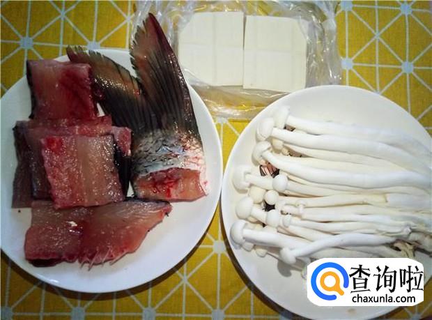 把要做鱼汤的食材准备好,鱼适量、海鲜菇适量、嫩豆腐适量。