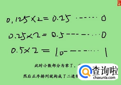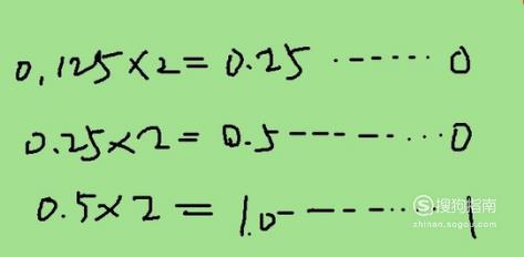 以0.125为例,先乘以2,得到0.25。整数部分为0.
