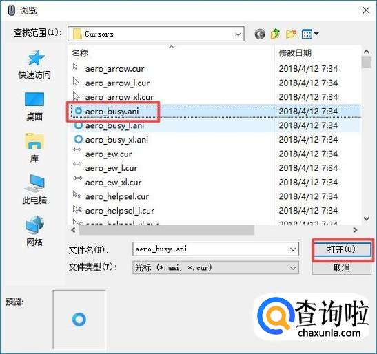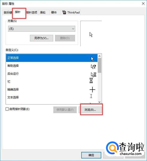 弹出的界面,我们点击指针,然后我们点击浏览;