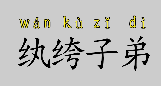 只有纨绔子弟这个词,出处《宋史·鲁宗道传》:“馆阁育天下英才,岂纨绔子弟得以恩泽处耶?”白话文:“这个地方是培养人才的地方,岂是儿等纨绔子弟前来放肆的地方?”