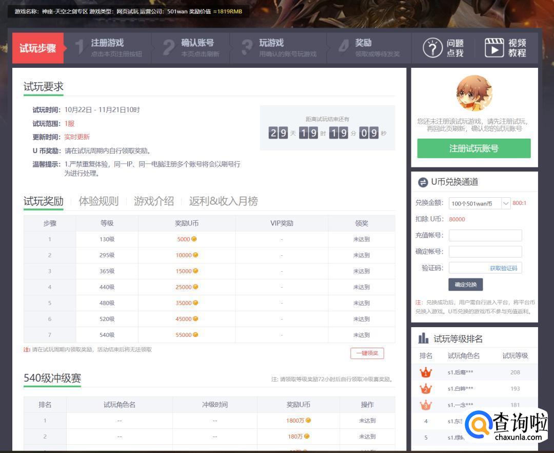 选择一个游戏点进去,进入界面可以看到它的奖励方案。如果玩网页游戏可以同时玩五六个游戏,一般挂机升级就行了,这样子赚的就快了。