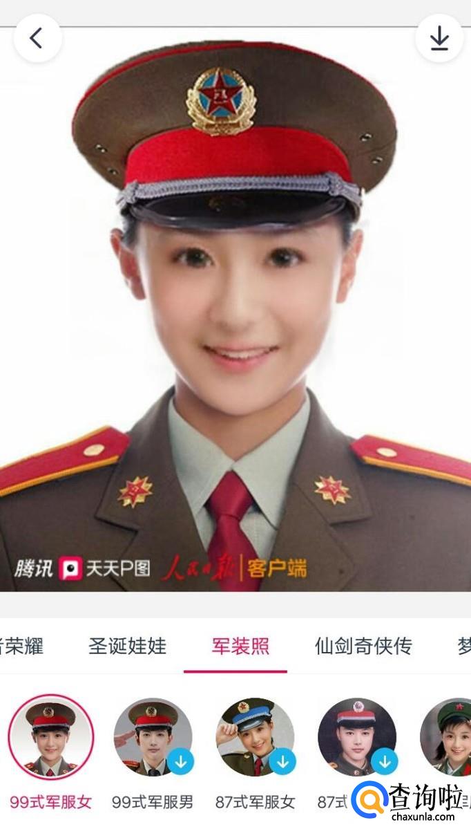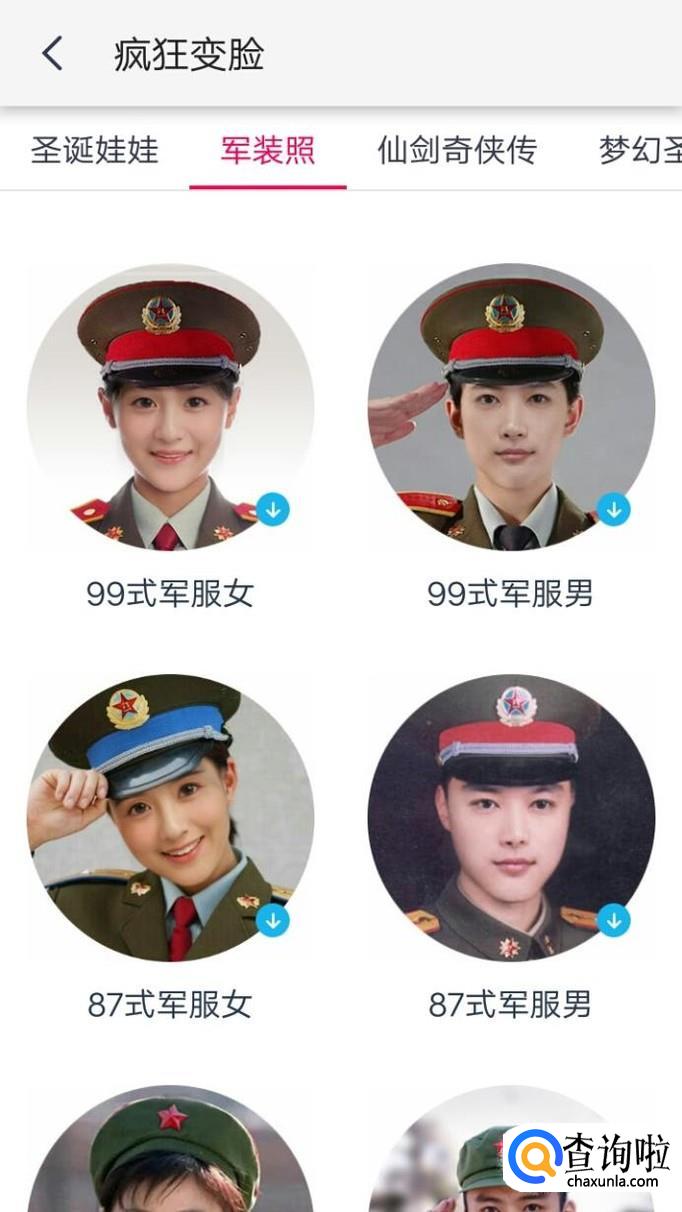 紧接着,在跳出来的页面中,我们手滑动找到军装照,并且找到一个自己要选择特效点击下载。