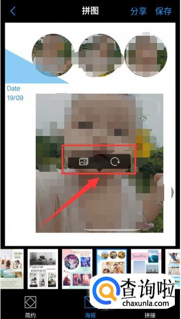 选择好拼图风格后,你也可以点击上面的小图片,可以更换图片和调整图片的方位哦。