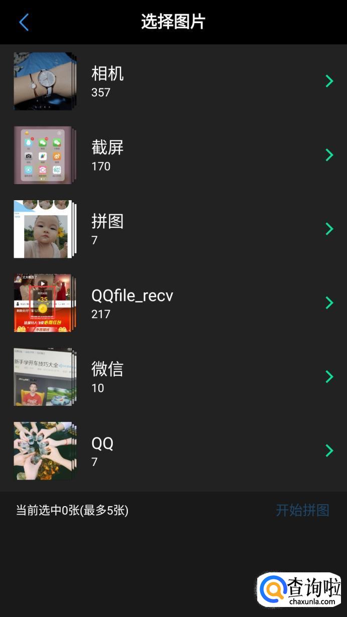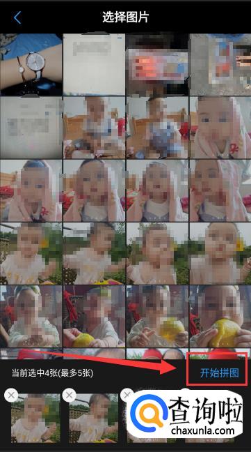 点击【拼图】之后,就进入【选择图片】的页面了,在里面选择你需要拼图的图片。