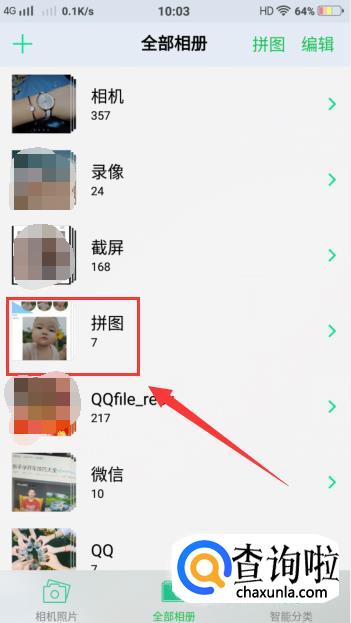 保存完成之后,在【全部相册】页面里面找到【拼图】的小相册,里面就是你刚刚保存的拼图相片啦。