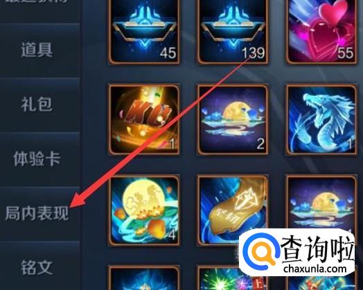 进入之后,点击“局内表现”,进入下一页面,如图所示。