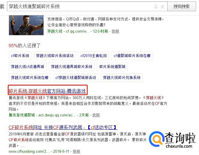 还有一种进入碎片系统的方法,就是直接在浏览器搜索”穿越火线道聚城碎片系统“,在搜索页面选择”碎片系统-穿越火线官方网站“进入该系统。