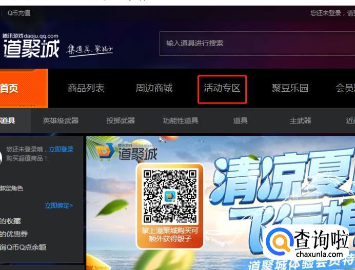 然后进入道聚城首页,点击打开页面顶端的“活动专区‘选项。