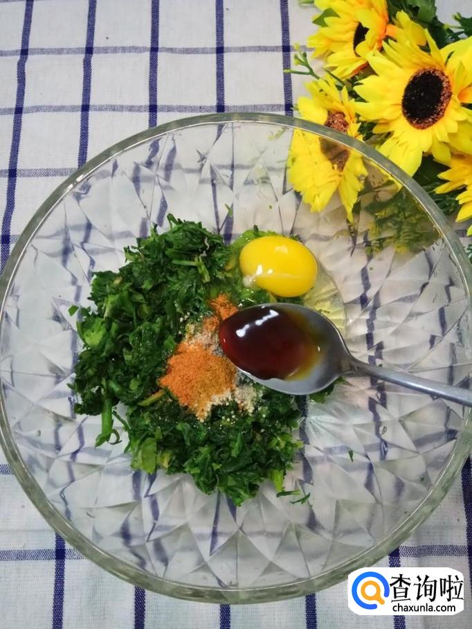 荠菜适量,鸡蛋适量,盐适量,鸡精适量,五香粉适量,麻辣鲜适量,蚝油适量。