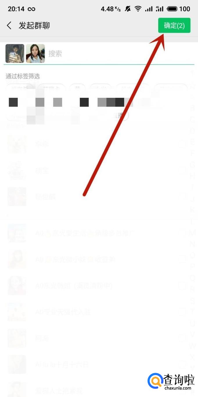 进入之后,加入想要拉入群的联系人,点击“确定”即可,如图所示。