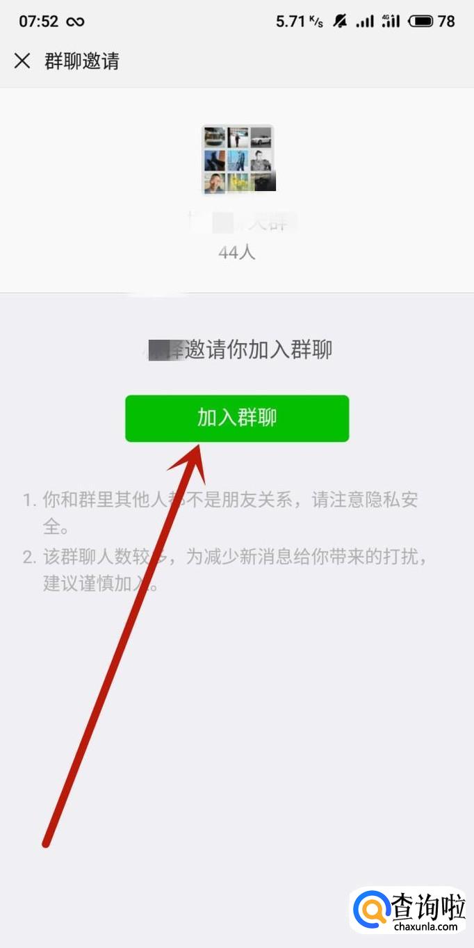 进入之后,点击“加入群聊“即可加入该群,如图所示。
