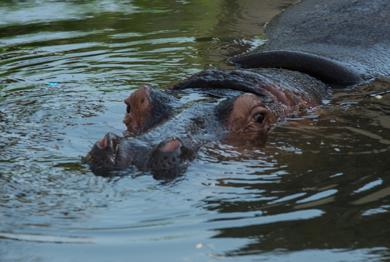 此外,河马的鼻孔、眼睛和耳朵上,还生有一种专门防止水流进去的“盖子”,当它潜泳时,这种奇妙的防水“盖子”会把鼻孔、眼睛和耳朵严密地盖起来,不让一滴水流进去。河马的这些特点是适应生活环境的进化结果。