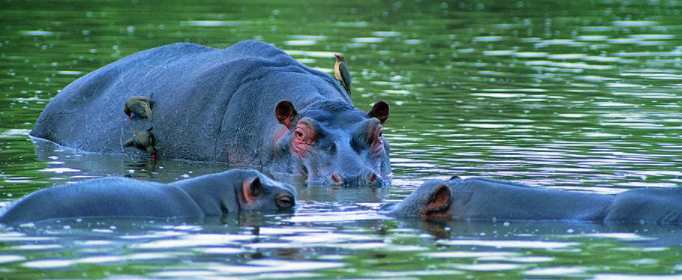 如果河马不呆在水里,时间一长,皮肤就会干裂,猛兽时常在白天出没,等到夜幕降临,它们才爬上岸来吃草。这样的生活习性致使河马的眼睛、鼻子和耳朵几乎都长在头顶上,特别适合水中生活的需要。这样,河马不但可以隐藏自己,而且可以观察周围的动静。