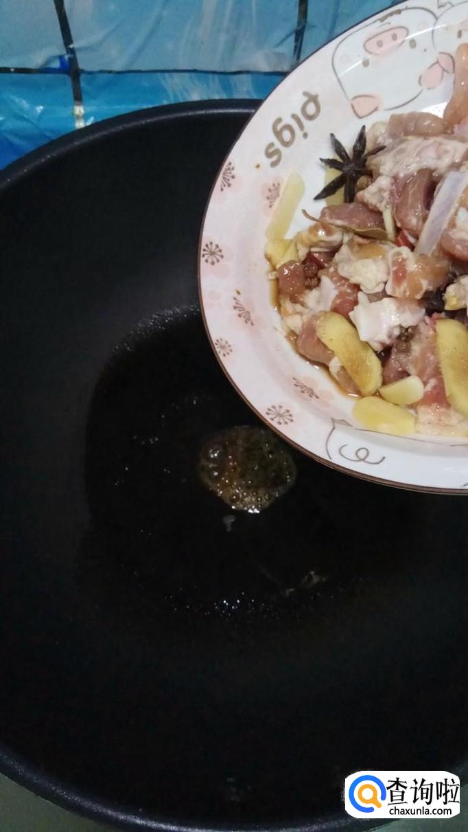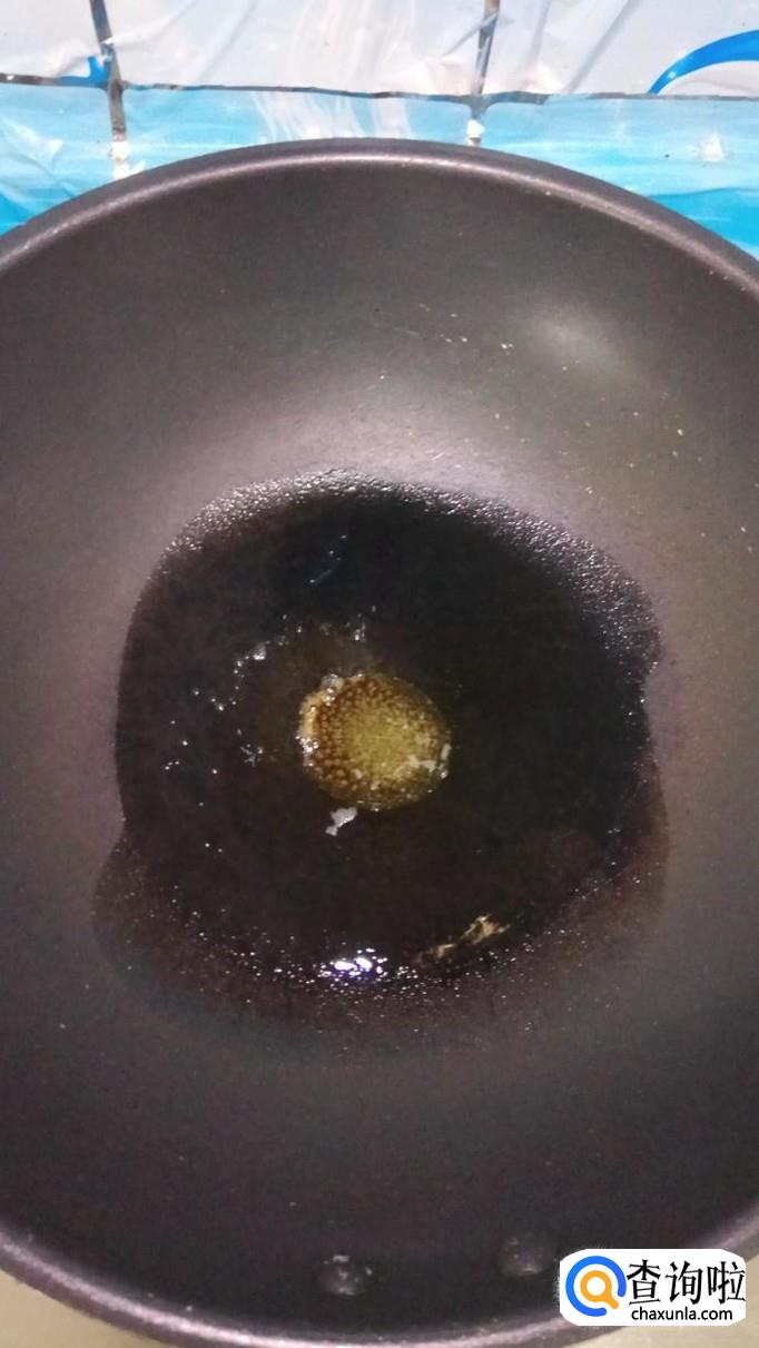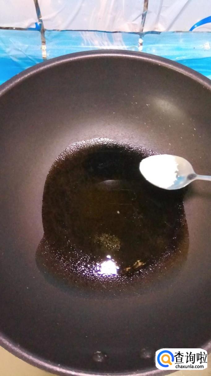 炒锅中放入适量油,油热后,放入白砂糖,炒出糖色。