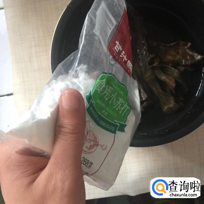 接着往容器里面加入适量的可食用小苏打,如下图所示。