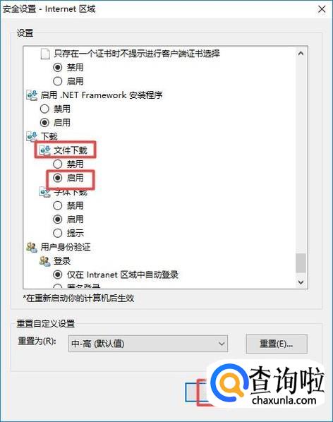 然后我们找到下载文件,将下载文件选择启用,之后我们点击确定,然后我们就可以下载文件了。