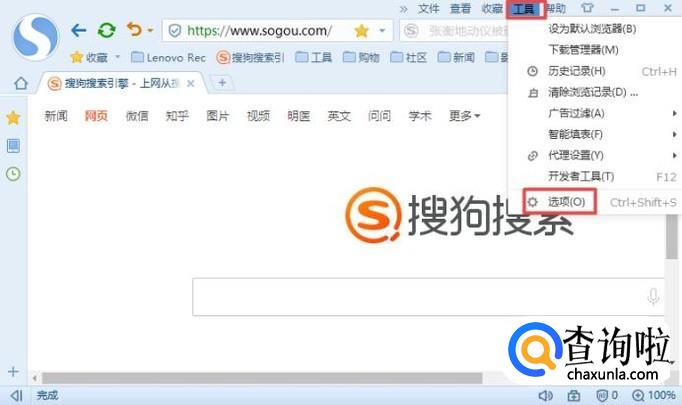 首先,我们打开我们的浏览器,然后点击工具,弹出的界面,我们点击选项;