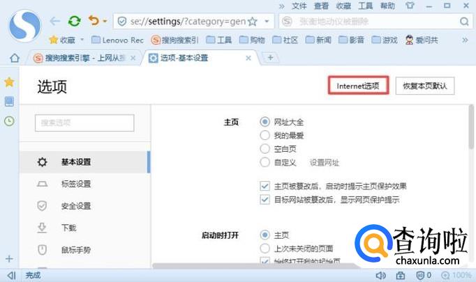 弹出的界面,我们点击Internet选项;