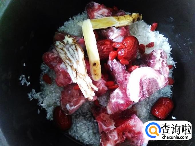 牛骨2斤,大米150克,红枣、当归、枸杞、黄芪适量,1勺料酒。