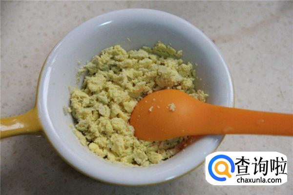 豆腐切块,入沸水中焯熟,捞出沥干水分,用勺子压成豆腐泥。