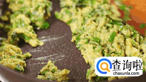 锅中倒油,热后倒入混合蛋液,翻炒1-2分钟,炒散后出锅即可。