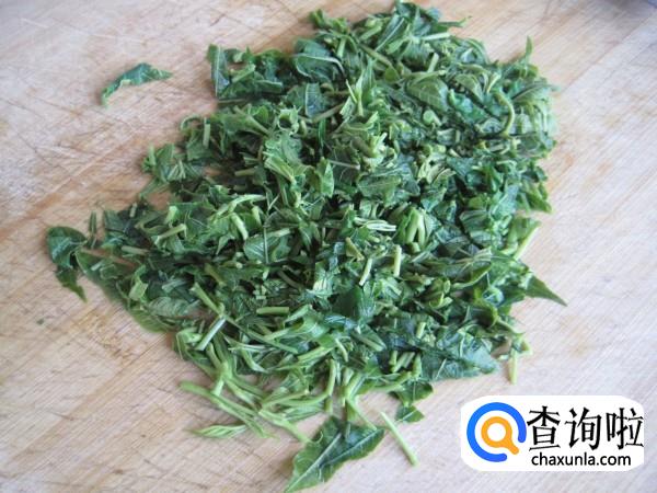 香椿洗净,开水中略焯后捞出切碎;