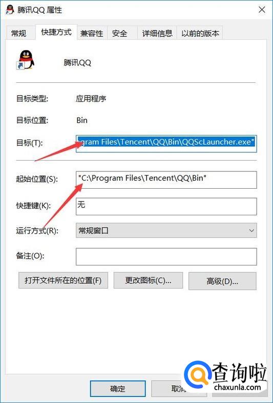 如果上述方法不行, 就只能再重装QQ,但是重装之前要彻底的把QQ文件全部删除。我们可以右键点击QQ快捷方式, 然后点击属性。 就可以看到QQ的安装路径了。 把QQ安装目录下所有文件删除,有需要的备份到其他地方。