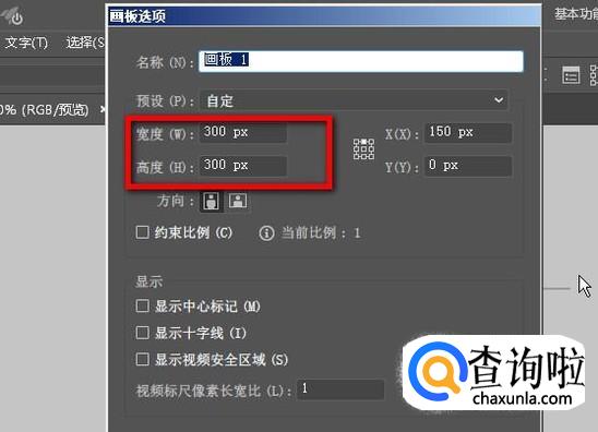 在弹出的画板选项面板中,我们就看到页面大小数值。
