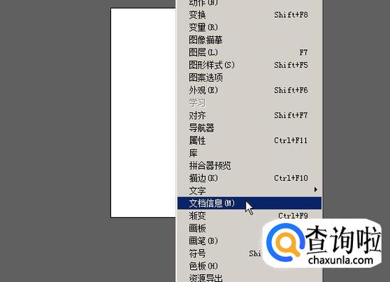 鼠标移到菜单栏的点击“窗口”菜单。弹出下拉菜单,再点:文档信息