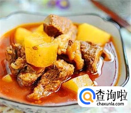 清炖羊肉 把羊肉放在冷水里并放一点白酒,泡至没有腥味时捞起来,洗干净后切成小块,倒入锅中并加足量的清水和生姜、蒜子等,用中火炖两个小时左右,然后放入八角、桂皮再炖一个小时起锅。