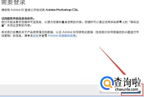 出现软件许可协议,选择”接受“;接受后会让登录,这里要注意,必须要断网后再安装。