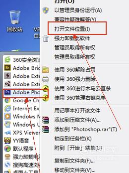 点击开始,找到已经安装好的photoshopcs6,右键选择“打开文件位置”。