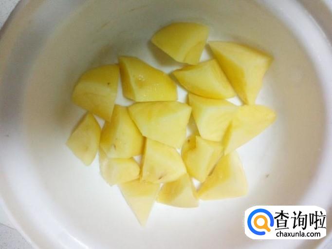 土豆去皮,用水清洗干净,控干水分,切成块。