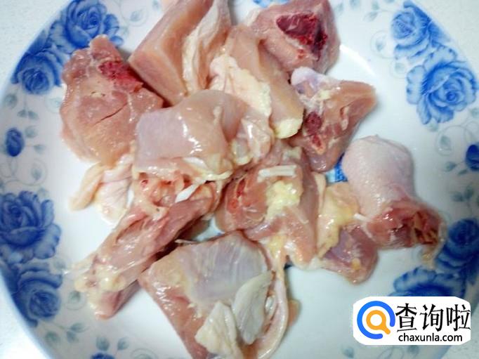 鸡腿用水清洗干净,控干水分,剁成块。