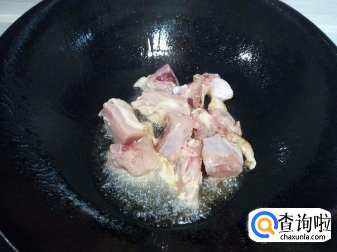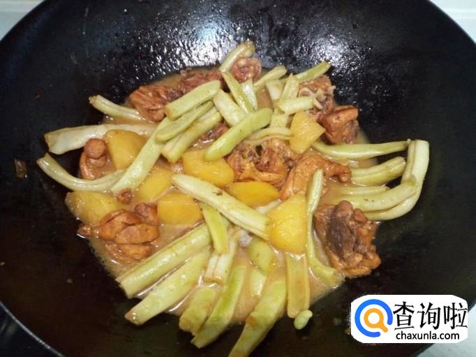 炒至鸡腿上色后,放入土豆翻炒。