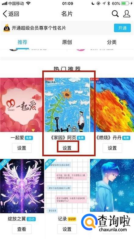 接着选择一个我们想要的个性名片并点击设置,如下图所示。