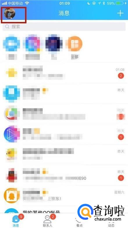 然后点击屏幕左上方的个人头像,如下图所示。