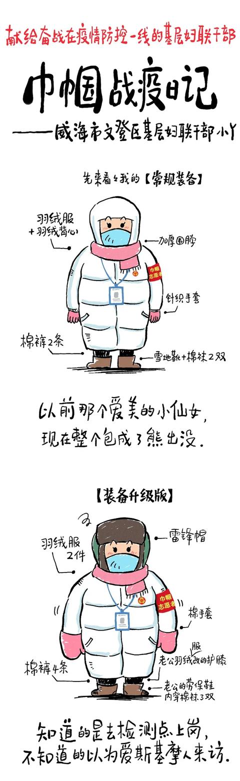 她们的故事,被小丫写成了日记。这位威海市文登区基层妇联干部代表,出自威海市漫画家协会李强笔下。让我们一起跟着小丫看一看防控一线,咱妇联“小姐姐”都在做着啥——