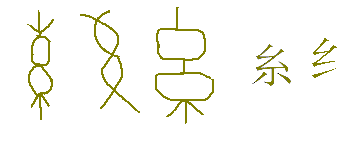 绞丝旁的字都和丝和编织有关,与丝线、纺织、布匹有关,和“与棉、麻、毛、线、布类织品”有关。“纟”指蚕丝、麻等细长状物,“纟”部多与纺织过程和结果的种种有关。引申为绳子则多与绳子的功用相关。绞丝旁是“糸”字的部首字,简体为“纟”,很多简体是从草书中演变而来。比如讠[訁]、饣[飠]、纟[糹]、钅[釒],在草书中就有写作今天的“纟”旁这种形式,所以带“糹”字旁的字就都用简体“纟”来表示了。“糸”是楷书的写法。“纟”是简化字的形体,一般只能用于左偏旁,糸、系、絮、累、繁、紫、紊等字不简化。