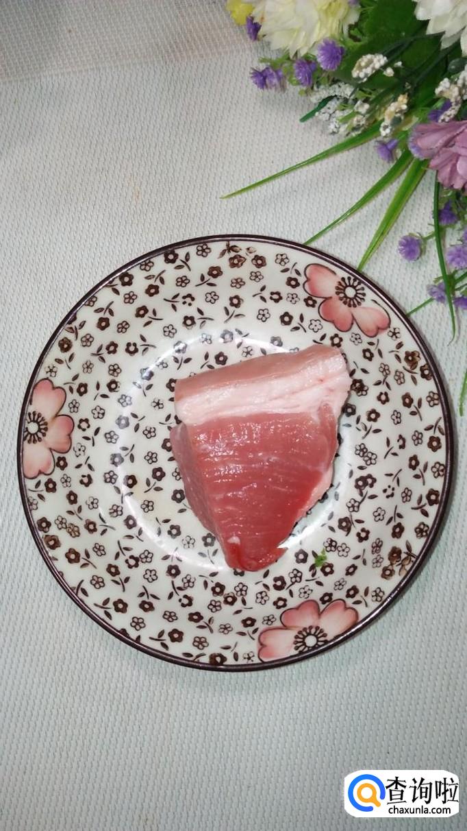 准备适量五花肉,洗净后切碎,和腌好的白菜碎放在一起。
