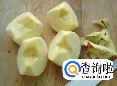 将菠萝去皮,都切成大小适中的块状,放在谈盐水中浸泡5分钟