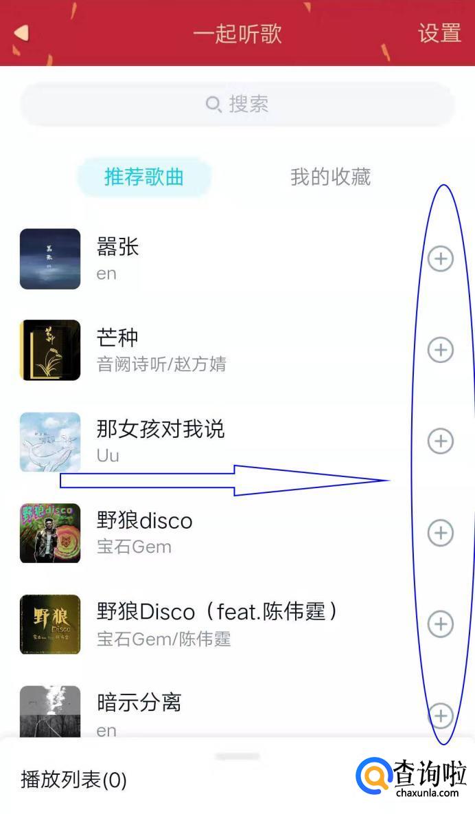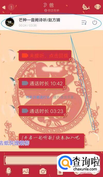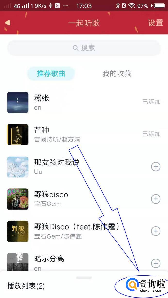 一起听歌操作完成,这里会有正在播放的歌曲的列表。