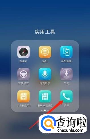 小编的“拨号”图标藏到使用工具里了,这时候长按“拨号”图标,将它拉到桌面就可以了。