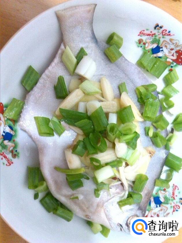 鱼放入盘中。然后,撒上少许葱段、姜丝、食用盐、椒盐粉,使之入味。