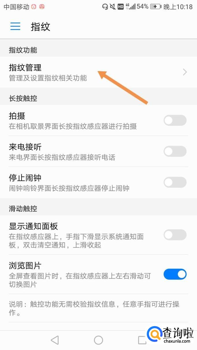 打开后,最上面有一个指纹管理,将其打开,如下图。