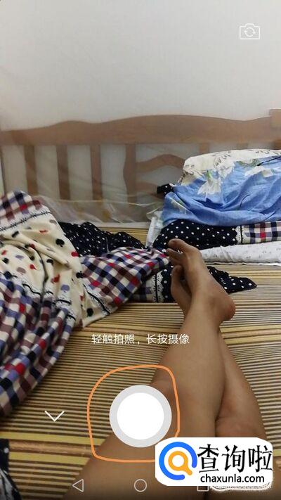 长按下方中间的拍摄按钮就可以录制视频了,一次只能录10秒的视频。