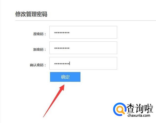 然后在里面输入路由器背面的密码,在输入自己要设置的新密码,在输入确认密码,确认密码和新密码一样,点击确定按钮,如图所示。
