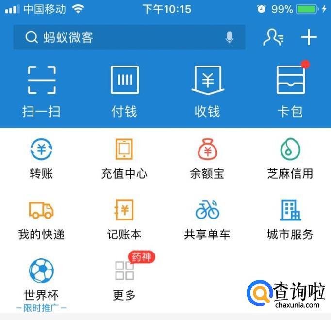 接下来我们就需要使用账号和密码登入支付宝,进入到支付宝的主页,在支付宝首页找到搜索栏。