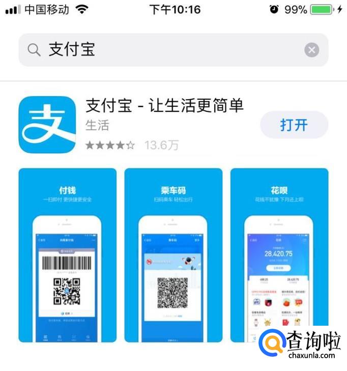 我们想要使用支付宝消违章缴纳交通罚款的话,我们要在手机的应用商店里面下载一个支付宝软件,有账号直接登入,没有的话先注册一个。