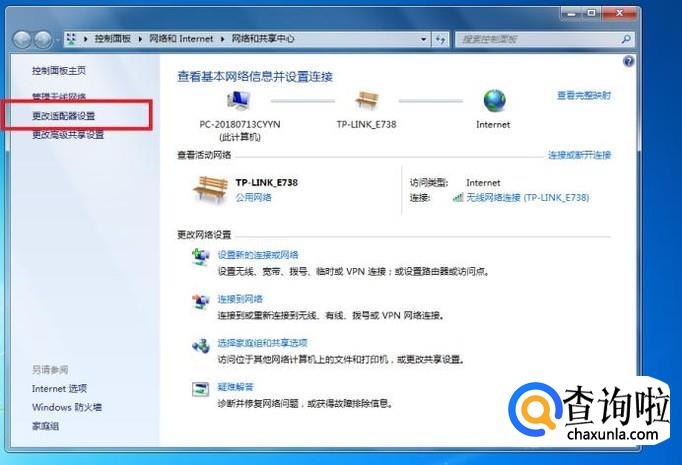 在弹框左侧选择“更改适配器设置”。